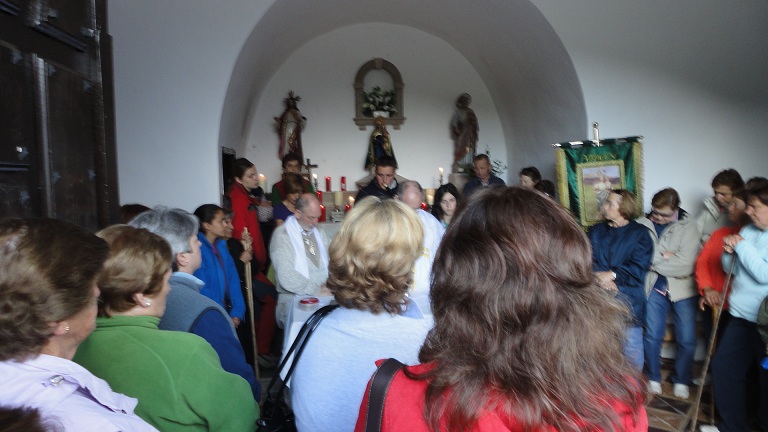que la Virgen de la Salud vuelve a Pembes. Como despedida a las 11 y media se celebra una eucaristía en la ermita de Áliva, oficiada por el padre Carmelo, párroco de Pembes y concelebrada por Don Juan Antonio, varios años profesor de religión en el instituto de Ampuero y responsable de la parroquia de Belén en Santander, que ha venido a Áliva acompañado de varios feligreses de la parroquia. Acuden también a Áliva varias decenas de fieles de la Virgen de la Salud. Estefan Dosal de Las Ilces acompaño la celebración tocando varias piezas con su gaita.Las jóvenes de Pembes, Rosa, Judith y Saray como siempre se encargaron de las lecturas y peticiones. La lectura del libro de Isaías, se refiere a la Virgen que da luz a un niño llamado Enmanuel. El Evangelio Juan (19, 25-27), se refiere al episodio de la Virgen María, a los pies de la Cruz de su Hijo, junto al discípulo amado. En la homilía el padre Carmelo, recordó que María es madre, y que caminando junto a una madre nada nos puede faltar, también hizo referencia al significado de Enmanuel (Dios con nosotros), que significa que Dios está junto a nosotros. Se termina la misa con una nueva pieza a la gaita, la Salve Popular y la veneración de la imagen de la Virgen. Después se iniciá la procesión, hasta Pembes, abriendo el estandarte de la Virgen de la Salud y después la Virgen llevada por cuatro fieles en sus andas procesionales. En ciertos puntos como Cogollos, Jalguero, inicio del camino de Pembes..., se hacían paradas, donde se rezaba el Ave María, el Gloria y se cantaba a la Virgen. Ya en Pembes, el canto de la canción de la Virgen de la Salud, nueva veneración de su imagen, y unos pinchos para reponer fuerzas, generosamente ofrecidos por las vecinas de Pembes. |