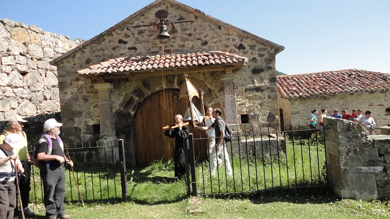 Celebración especial de San Juan en el Santuario de la Virgen de la Luz. La misa se celebra a las cinco de la tarde por ser domingo, algunos peregrinos como otros años comen en las campas próximas al Santuario. Sin embargo, antes de la celebración, nos encontramos con personas envolviendo jarrones, sacando cajas, crucifijos, y es que es día de recojida, ya que durante el verano se realizarán las obras. En la misa concelebrada por Don Elías y Don Benito se lee el Evangelio de San Lucas, relatando el nacimiento de San Juan, fiesta que se celebra hoy. Don Elías destaca esta figura, "el más grande hombre nacido de mujer" según dice Jesucristo, y que debe decrecer para que Jesús crezca, pero ello el nacimiento de San Juan se celebra en el solsticio de verano, cuando los días empiezan a crecer, y la nochebuena, nacimiento de Jesús, cuando los días comienzan a crecer. Al final de la misa Don Elías informa de que: Después se lleva en procesión a la Virgen a su segunda casa de Aniezo, para que se realicen las obras. Las obras consisten en la reparación en profundidad de la capilla, el arreglo de la casa, para guardar los objetos de la fiesta, la mejora de la explanada y la construcción de un altar exterior para las misas de campaña, unas obras con alto presupuesto. La Virgen permanecerá en Aniezo, hasta el 8 de septiembre, en que se realizará una procesión de subida iniciada a las diez, para celebrar la misa a la una. Desde el 8 de Julio se harán rosarios a las cinco de la tarde y misas a las cinco y media, ,en la iglesia de Aniezo todos los domingos que la Virgen permanezca allí. El Culto a la Virgen de la Luz, es un compromiso adquirido para su coronación canónica. Se han hecho las correcciones en los estatutos de la cofradía de la Virgen de la Luz, y se está a la espera de su aprobación, para constituir la Cofradía, y que los fieles, que lo deseen, puedan formar parte de su asamblea general. Tras la misa, se recogen los últimos Santos y otros objetos, y los coches con los objetos del Santuario bajan hacia Aniezo y también comienza la procesión. La Virgen se lleva en sus andas adornada con picotas y con su manto azul. El primer relevo lo hacen Don Elías y Don Benito, con Juan y Francisco pendientes de la "La Santuca" y Jose con la megafonía al hombro. Los fieles se turnan llevando a la Virgen, mientras el sol luce en un radiante día de verano, con excelente temperatura, hoy Don Elías reza el Rosario (misterios gozosos, dolorosos y gloriosos). Se para en la cajiga, en las portillas, y después Don Benito hace el recuerdo a los difuntos, en el lugar en que falleció el recordado mayordomo Lorenzo. Después se pasa por Somaniezo, y el Rosario pasa a ser cantado, para llegar por la carretera a la iglesia de Aniezo. El día termina con el recuerdo de las informaciones sobre la Virgen, el canto de la Salve Popular y la veneración de "La Santuca", poniéndonos en sus manos mediadoras con El Señor. |
