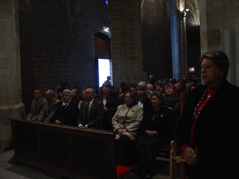 cofrades con su distintivo, cruz dorada y lazo verde prendido en el pecho.